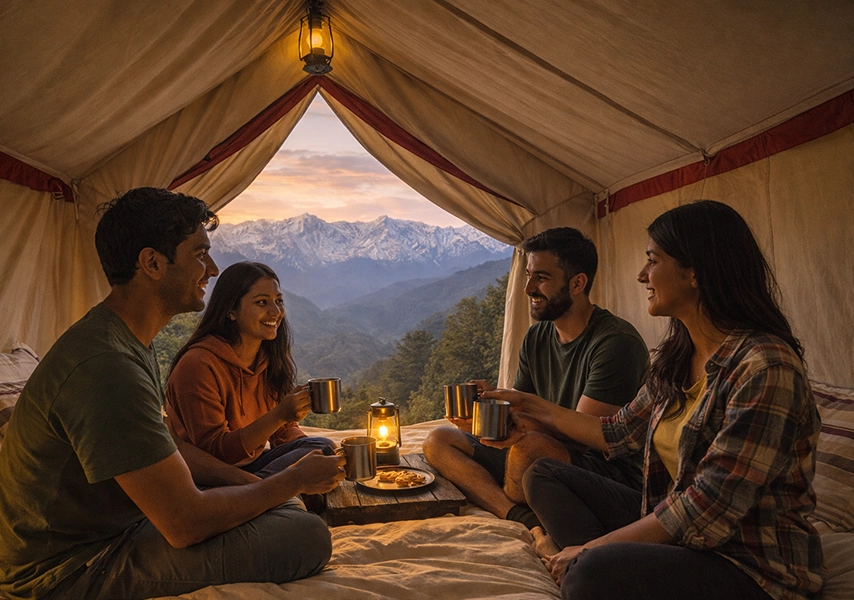 Pangot campsites are also suitable for small destination events such as birthday celebrations, pre-wedding functions, and private gatherings. The natural mountain background creates a beautiful setting for photos and memorable moments. Many camps arrange bonfire dinners, music nights, and local food experiences for special events.