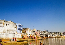 Pushkar → Brahma Temple, Sacred Lake, vibrant bazaars